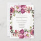 Impresiona a sus huéspedes con esta hermosa corona floral acuática. Desde la colección Magenta Pink, esta encantadora decoración romántica y floral de flores está decorada con múltiples tonos de hojas magenta rosa y verde. Borde dorado doble sobre fondo blanco delante y magenta detrás.