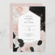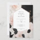 Elegante invitación a la boda inspirada en Chanel con flores rosadas y follaje con acentos negros de moda. Una mezcla de lujo y romanticismo.
