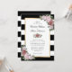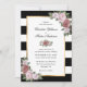 Invite a sus invitados a su fiesta de bodas de color negro y ruidosa con estas elegantes invitaciones florales de boda, con flores rosas de color rosa, sobre un fondo de rayas blancas y negras. Elementos coincidentes disponibles.