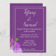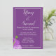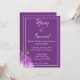 Una clásica invitación a la boda con flores moradas, este artículo presenta un tema de color morado y plateado. Los detalles de la ceremonia, mostrados en un fondo real morado, están encerrados en un hermoso marco plateado. El texto se presenta en una bonita fuente plateada con un ilustracion de flores moradas en la esquina inferior izquierda de la invitación. Personaliza tus invitaciones hoy. Diseño de invitaciones: Bodas de arte Floral de Rhoadie: AMBilustraciones http://www.etsy.com/shop/AMBillustrations/