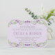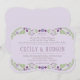 Las invitaciones a bodas de moda rústica incluyen un marco floral simétrico de lilas, lavanda, flores violetas y de ciruela moradas y hojas botánicas verdes con un aspecto dibujado a mano que enmarca el diseño.