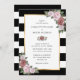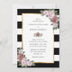 Invite a sus invitados a su fiesta de bodas de color negro y ruidoso con estas elegantes invitaciones florales de boda, con flores rosas y verdes, sobre un fondo de rayas blancas y negras. Elementos coincidentes disponibles.