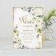 Magnífico spray botánico floral blanco de hortensias y rosas con vegetación, eucalipto y acentos de oro vintage. Esta es una invitación tan hermosa. Hermoso y perfecto para cualquier temporada.