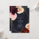 Invitación Boda floral rústica moderna azul oscuro y dorado
