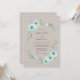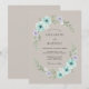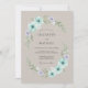 Este diseño presenta una delicada disposición de anémonas verdes menta y ramitas de lavanda sobre un fondo cálido taupe. El suave estilo de acuarela crea un ambiente etéreo y romántico perfecto para un evento de temporada. La elegante vegetación y las pequeñas flores blancas completan la composición botánica.