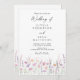 Celebre su amor con esta elegante invitación de boda con flores silvestres de acuarela que presenta flores pasteles pintadas a mano en tonos suaves de lavanda, rosa, melocotón y verde salvia. Perfecta para una boda de jardín en primavera o verano, este diseño combina una simplicidad atemporal con un encanto romántico.