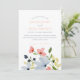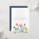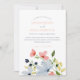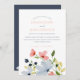 Invitación Boda floral simple boho azul y rosa