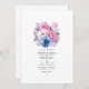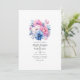 Invitación de boda floral suave de rosa y azul. Ideal para una boda en el jardín. El código QR en el reverso dirige a su sitio web de boda donde la gente puede obtener más información y confirmar asistencia