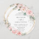 Invitación Boda floral suave rosa sonrosado oro verde redondo