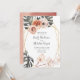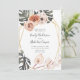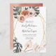 Elegante y única invitación floral a la boda con tus detalles bodas rodeados de un marco geométrico de oro falso, hojas tropicales verdes oscuras y peonías onduladas y orquídeas. En la parte posterior de la invitación hay una acuarela de fondo. Diseñado para coordinar con nuestra colección Boho Tropical Floral boda.