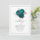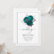 Haga que su boda sea inolvidable con esta elegante invitación a la boda floral turquesa y borgoña. Con un impresionante arreglo de rosas turquesa con acentos burdeos, este diseño incluye un marcador de foto de personalizable y un cómodo código QR al revés para compartir sin inconvenientes los detalles del evento. Ideal para una celebración romántica y moderna.