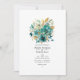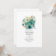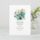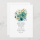 Invitación a la boda floral verde azulada y dorada. El código QR al revés se dirige al sitio de su boda, donde la gente puede aprender más y ver más.
