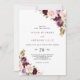 Esta invitación a una boda con flores de color borgoña verde es perfecta para un boda rústico. El diseño presenta elegantes ramos de flores verdes, ruidosas, violetas, rojas y burdeos, inspiradores de la belleza natural.