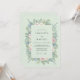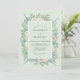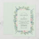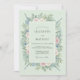 Este diseño presenta un suave fondo verde menta complementado con un exuberante borde floral de acuarela. Delicadas rosas rosadas y flores azul claro se paren con eucalipto de dólar de plata y follaje de salvia. La estética general es romántica y aireada, lo que la convierte en una opción perfecta para un evento de primavera estacional.
