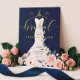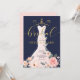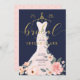 Anuncia tu evento de ducha de novias con nuestra elegante, elegante y moderna invitación a la futura novia con rosa floral. El diseño presenta nuestra moda pintada a mano, elegante y moderno vestido blanco y rosa pálido boda vestido con un jardín botánico de rosas y flores florecientes. El vestido floral está colgado en un adorno de trajes dorados de estilo vintage. Los detalles suaves de encaje floral y los brillantes emblemas de la vestimenta boda crean un hermoso, sofisticado y lujoso aspecto. Una hermosa tipografía de escritura a mano "Bridal" en oro falso. La paleta color azul marino, rosa negro y dorado imitación crea un estilo moderno, chic y vintage. El reverso presenta un fondo minimalista rosa pálido con un patrón dorado de corazón que se complementa con el arte frontal. Todos los ilustraciones contenidos en esta elegante invitación a la ducha de boda floral son obras originales de Moodthology. Puede personalizar el tamaño del texto, el color del texto, la fuente y el diseño de su propio diseño personal.
