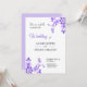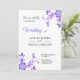 Diseño de flor ultravioleta decorativo en invitaciones de boda blanca con texto de personalizable