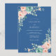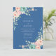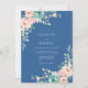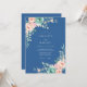 Este diseño encantador presenta un rico fondo azul marino adornado con delicados arreglos florales de rosa pálido y verde menta. Evocando una atmósfera romántica y serena, las suaves flores y los acentos frondosos crean un florecer artístico. Perfecto para una ocasión sofisticada y elegante.