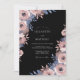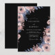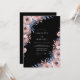 Delicadas rosas de acuarela en tonos suaves de rubor y azul polvoriento adornan este diseño elegante. Las pinceladas artísticas crean un ambiente romántico y etéreo, perfecto para una celebración refinada. Esta sorprendente paleta de flores silvestres apagadas contra un fondo profundo evoca una belleza atemporal.
