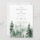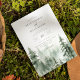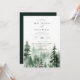 Elegante Watercolor Pine Tree Forest Scene, invitación a la boda. La invitación presenta un diseño de tipografía de moda que combina caligrafía y negrita. Coordinando el respaldo de color verde del bosque esmeralda oscuro.