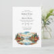 Celebre su día especial con esta encantadora invitación a una boda acuática con un tranquilo lago de montaña rodeado de pinos altos y un suave follaje otoñal. El paisaje pintado a mano evoca el romanticismo de la gran naturaleza al aire libre, con reflejos que atraviesan aguas tranquilas y cumbres nevadas a lo lejos. La elegante tipografía y la abundancia de espacios en blanco mantienen el foco en los detalles de sus bodas, al tiempo que añaden un toque atemporal y moderno. Perfecto para parejas que planeen una celebración rústica, de montaña, a orillas del lago o de inspiración natural. Personalice fácilmente el texto en línea para hacerlo único suyo.