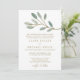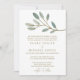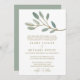 Esta tarjeta de invitación formal a la boda con veda de oro es perfecta para una elegante boda. El diseño es sencillo y delicado, con un purpurina de oro falso que recubre las ramas de las hojas verdes de oliva. Nota: Este diseño no tiene purpurina de oro real. Es un gráfico de alta calidad hecho para parecer un shimmer dorado.