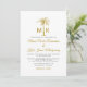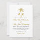 Invitación Boda formal en la playa de palmeras doradas monogr