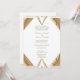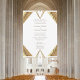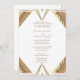Invitación formal a la boda. Se enumeran los dos conjuntos de padres. Marco Art Deco Gold y fondo blanco. Texto dorado.