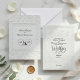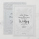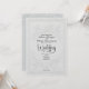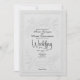 Establece un tono de lujo sofisticado para tu día especial con este diseño minimalista perfecto para uniones de etiqueta negra de alta gama. La obra de arte presenta un efecto de relieve ciego falso impreso en blanco sobre blanco con detalles de escultura botánica intrincados y una silueta romántica sutil.