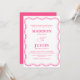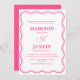 Presentamos la Invitación a la Boda Formal Retro Pink Wavy, en la que las divertidas curvas de risitas en colores audaces y contrastantes se unen a la caligrafía elegante para crear una delicia visual. Esta moderna y contemporánea papelería ofrece un encanto suave, divertido y caprichoso, perfecto para parejas que buscan alejarse de la tradición. Moderna y ondulada, esta invitación promete hacer una declaración memorable, marcando el tono para una celebración boda única e inolvidable.
