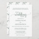 Esta sencilla tarjeta de invitación formal a la boda verde claro es perfecta para un boda rústico o moderno. El diseño minimalista incluye un elegante guión de broche y un bonito corazón femenino. El respaldo presenta un patrón clásico de hojas y ramas.