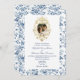 Añada elegancia atemporal a su gran día con esta invitación nupcial de inspiración francesa. Con delicados estampados de tela floral azul polvoriento y un adornado marco dorado de estilo barroco con tu foto o monograma en la parte superior, este diseño combina el encanto real con el amor del amor. La parte posterior incluye un código QR integrado para el acceso a RSVP y al sitio web boda, lo que hace que esta invitación sea tan funcional como bonita. Ideal para bodas vintage, inmobiliario o romántico en el campo. Personalizar con tus datos para un mantenimiento personalizado.