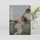 Diseño característica una foto que se puede personalizar con superposición de sombra negra. Nombres en el lado izquierdo y detalles del día de la boda en el rincón inferior derecho.