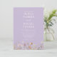 Anuncie su día especial con esta invitación a una boda morada de lavanda de flores silvestres, que incluye un delicado diseño floral y un elegante diseño minimalista que destaca su foto y un conveniente código QR para el acceso a RSVP o al sitio web. Los suaves tonos de lavanda y las flores silvestres acuáticas crean un ambiente romántico y aireado, perfecto para bodas de primavera o jardín que combinan belleza natural con simplicidad moderna.