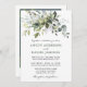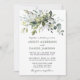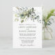 Moderna y elegante acuarela La tarjeta de invitación a la boda de la vegetación botánica incluye hojas de eucalipto, follaje botánico verde, hojas azul polvorientas y otros hermosos paisajes botánicos. Foto de vuelta.