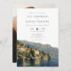 Esta elegante invitación a la boda del lago Como acuarela puede ser personalizada con su información en tipografía de moda y todas sus fotos especiales al revés. Diseñado por Thisisnotme©
