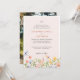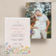Esta elegante y elegante invitación a una boda monocromática incluye flores silvestres de color acuático, hojas, libélulas en una suave paleta de acuarela de color rosa, amarillo azul y verde . En la parte posterior tienes espacio para tu foto favorita en orientación vertical o vertical. Perfecto para bodas de primavera, verano o otoño, o celebración en el jardín o al aire libre.