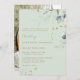 Invitación a la boda por follaje. Tipografía de oro. Diseño moderno y fuente. Elegante. Salvia claro. No hay padres en la lista. Junto con nuestras familias... Foto de atrás.