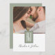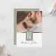 Sencilla, moderna, elegante y minimalista invitación a la boda verde sabio con foto en la parte delantera y monograma - a ambos lados de la invitación. Moderno, contemporáneo y moda.
