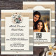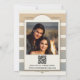 Una moderna invitación a una boda con un elegante diseño a rayas en tonos tierra pastel. Un ramo central con suculentos, algodón y trigo añade elegancia y conexión a la tierra. En la parte posterior está su foto personalizado con una plantilla de código QR fácil de personalizar (opcional). Ideal para un boda al estilo de un país de moda.