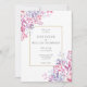 Invitación a una boda de flores silvestres de campo bonito con una mezcla de ramos de flores naturales moradas, lilas y rosadas. Esta elegante invitación a la boda puede ser personalizada con su información del día de la boda en tipografía de moda y foto especial al revés. Diseñado por Thisisnotme©