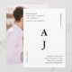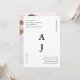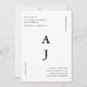 Esta moderna invitación minimalista a la boda en blanco y negro presenta un monograma central con un marco de tipografía de detalles bodas y una foto completa de atrás.