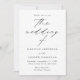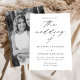 Minimalista y moderna invitación a la boda con los detalles de su boda en letras negras simples con "el boda de" en un elegante guión de caligrafía. El fondo blanco presenta sutiles puntitos negros para un diseño único de invitación a la boda. La invitación se invierte para mostrar su foto de compromiso vertical. Diseñado para coordinar con nuestra colección de bodas Modern Elegance.