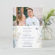 Las invitaciones románticas a la boda de fotos con flores de color azul turquesa presentan celeste azul polvoriento y flores delfinísimas con vegetación eucalipto acentuada con mariposas. Añade tu texto personalizado en un guión moderno y elegante de caligrafía y tu foto favorita. Diseñado por Evco Studio www.zazzle.com/store/evcostudio
