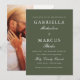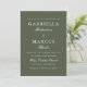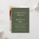 Esta invitación a la boda verde y blanca de moda incluye una foto con todo el color y una tipografía elegante.