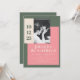 Invitación de matrimonio fotográfico verde y rosa geométrico de moda