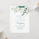 Esta vintage invitación a bodas de eucalipto verde es perfecta para un boda rústico. El diseño está decorado con un color verde acuático pintado a mano, hojas marinas y flores cuidadosamente dispuestas en ramos. Guarde el papel incluyendo más detalles en la parte posterior de la invitación en lugar de en una tarjeta separada.