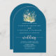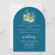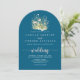 Este boho arco de flores silvestres frente a la marina y la invitación a la boda en la parte trasera es perfecto para un boda rústico. El diseño se compone de flores acuáticas rosas, rubias, amarillas y blancas, dispuestas en elegantes ramos. Guarde el papel incluyendo más detalles en la parte posterior de la invitación en lugar de en una tarjeta separada.