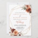 Esta invitación dorada geométrica a bodas florales y nupciales traseras es perfecta para un boda clásico. El diseño presenta elegantes flores de color burdeos, marrón, blanco y otoño onduladas, e inspiradora belleza artística. Guarde el papel incluyendo más detalles en la parte posterior de la invitación en lugar de en una tarjeta separada.