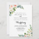 Esta sencilla y florida invitación a bodas frontales y caseras es perfecta para un boda tropical. El diseño presenta rosas pintados a mano, blancos, rosados y ondulados, incrustados en un follaje verde, que inspiran la belleza artística. Guarde el papel incluyendo más detalles en la parte posterior de la invitación en lugar de en una tarjeta separada.