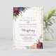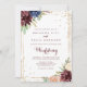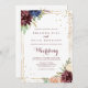 Esta geométrica invitación a la boda con purpurina de oro y espalda es perfecta para un boda rústico. El diseño se compone de acuarela de color púrpura, marina, rubor, burdeos, flores de la marina, hojas verdes y doradas y un marco geométrico elegante. Guarde el papel incluyendo más detalles en la parte posterior de la invitación en lugar de en una tarjeta separada.